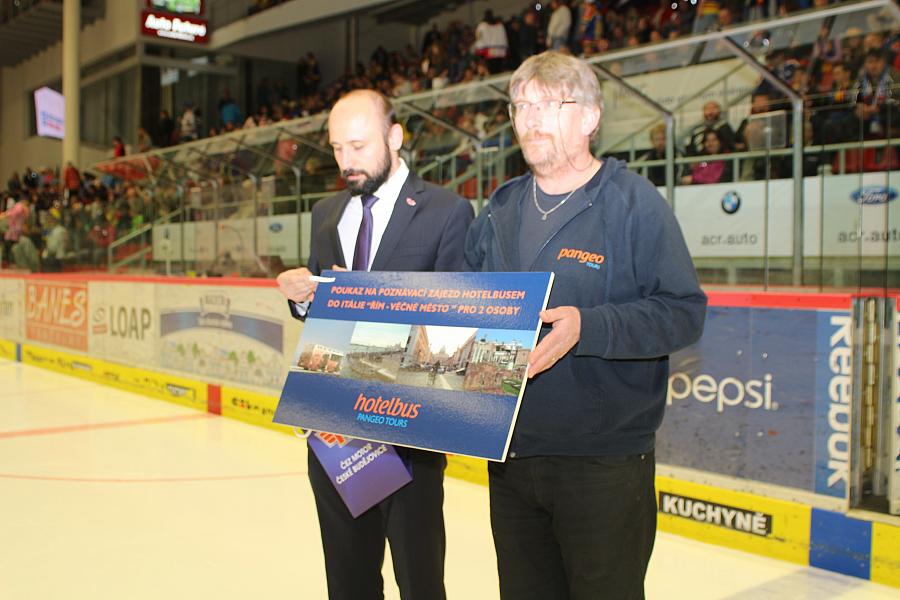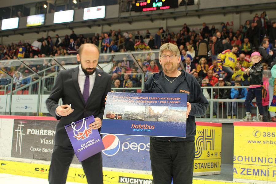 Naše cestovní kancelář má své sídlo v Českých Budějovicích a co bychom byli za „Budějičáky“, kdybychom nefandili Motoru. Bedlivě sledujeme průběh celého ligového ročníku a samozřejmě i baráže. Na jednom z barážových utkání jsme odměnili výherce dlouhodobé soutěže a tím zatraktivnili a zviditelnili hokejové družstvo naší krajské metropole. Cestovní kancelář Pangeo Tours věnovala do soutěže hlavní výhru – zájezd pro dvě osoby do Říma na palubě hotelbusu. Cena byla předána vedení Motoru přímo na ledové ploše. Výherci blahopřejeme a Motoru držíme palce a věříme v postup do extraligy.